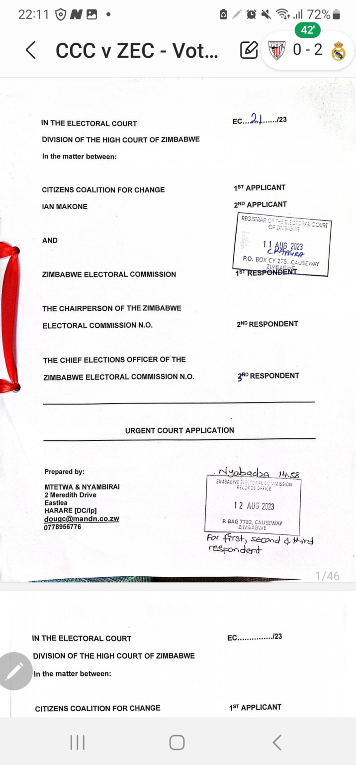 In a bold and urgent push for free and fair elections, Ian Makone, Secretary for Elections in the opposition Citizens Coalition for Change (CCC), has gone to court to force the Zimbabwe Electoral Commission (ZEC) to come clean. Makone has filed an application in the High Court demanding that ZEC immediately release an updated national voters’ roll and the final list of polling stations ahead of the August 23, 2023 general elections.